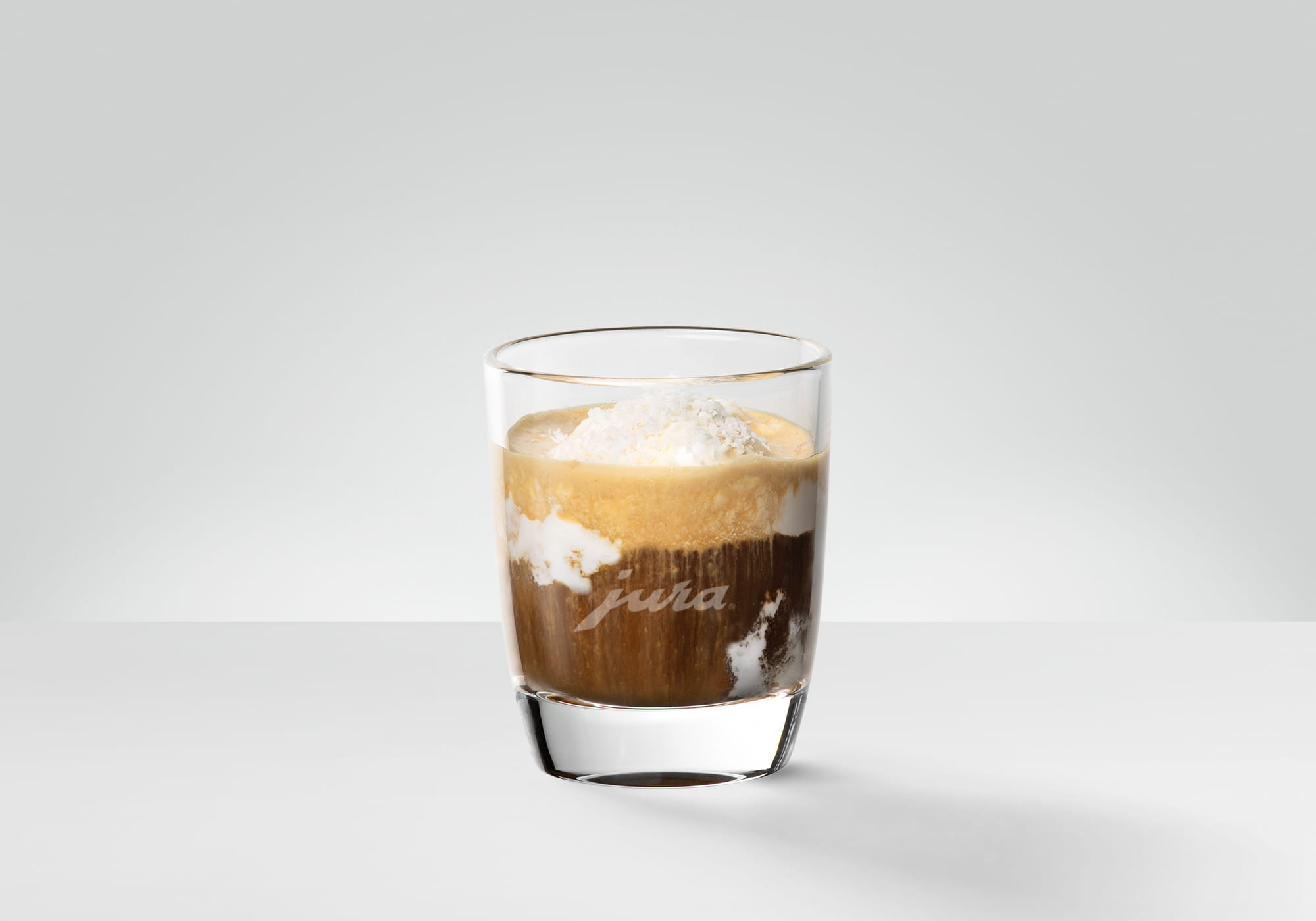 • Place the espresso glass under the coffee spout and prepare an espresso into the glass.
