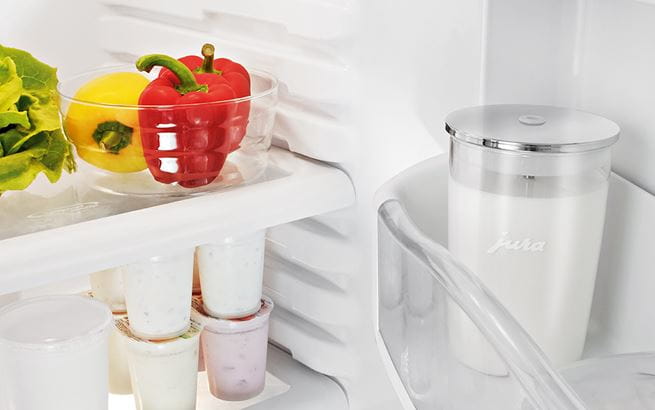 The glass milk container makes an indispensable addition for all coffee lovers who like to spoil their family and guests from time to time with a trendy flat white, latte macchiato or cappuccino. Perfectly harmonised with the typical lines of JURA design, it is easy to store in the refrigerator and connect up to the coffee machine as and when required.  The milk lance is connected at just the right height to allow the milk to be drawn in and frothed with ease. The container holds 0.5 litres and is dishwasher-safe.
